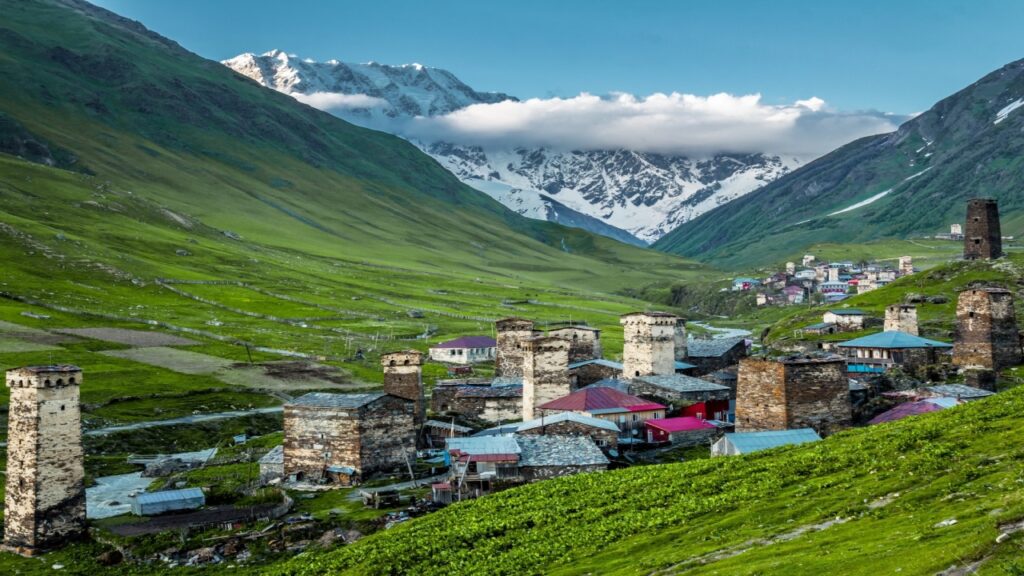Śniadanie w hotelu i wyjazd samochodami terenowymi malowniczą trasą do Uszguli – najwyżej położonej (2200 m n.p.m), zamieszkałej wioski w Europie. Uszguli jest cennym zabytkiem architektury i historii, co w dużej mierze sprawiło, że Górna Swanetia została wpisana na listę Światowego Dziedzictwa UNESCO. Wioska słynie z tradycyjnych swaneckich domów ze smukłymi wieżami obronnymi. Zwiedzimy starą cerkiewkę Lamaria (Matki Bożej) z XI w. oraz lokalne muzeum, gdzie zobaczymy jak żyli tutejsi mieszkańcy przed wiekami. Czas wolny, a dla chętnych spacer w górskiej scenerii Kaukazu w kierunku górującego nad okolicą najwyższego szczytu Gruzji – Szchary (5068 m n.p.m).. Powrót na kolację i nocleg do Mestii.